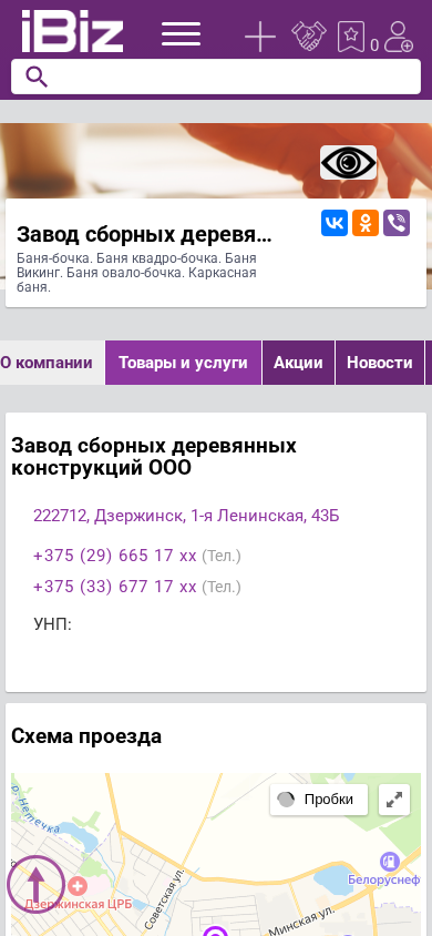 | Название / Заголовок | Завод сборных деревянных конструкций ООО - Баня-бочка. Баня квадро-бочка. Баня Викинг. Баня овало-бочка. Каркасная баня. . 222712, Дзержинск, , 1-я Ленинская, 43Б |