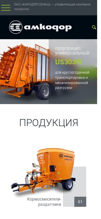 | AI-анализ | This online resource represents the official website of OAO "AMKODOR-SEMASH" - the managing company of the AMKODOR holding in Belarus, located in the Minsk region, Dzerzhinsk city, ul. Fominykh, 19. The company specializes in the production of agricultural equipment and machinery, including: - Front-mounted equipment for loader tractors by AMKODOR - Cattle feed mixers and distributors - Universal, special, and multifunctional semi-trailers - Mineral fertilizer spreaders - Bunker trucks and transfer vehicles - Attachments and non-liquid products The website provides information on the company's management, certifications, quality system, anti-corruption measures, news, vacancies, catalogs, and contacts. Visitors can find details about |
