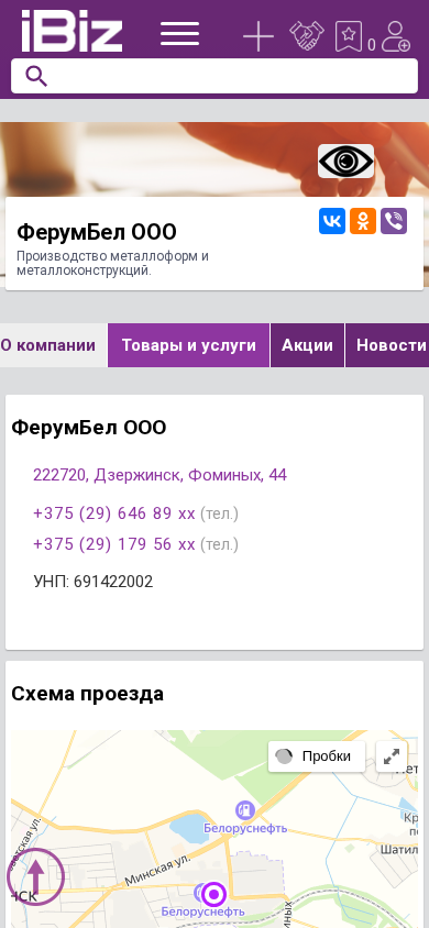 | Название / Заголовок | ФерумБел ООО - Производство металлоформ и металлоконструкций.. 222720, Дзержинск, , Фоминых, 44 |