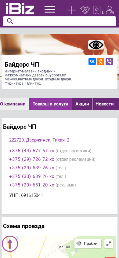 | Название / Заголовок | Байдорс ЧП - Интернет-магазин входных и межкомнатных дверей buydoors.by. Межкомнатные двери. Входные двери. Фурнитура. Плинтус. . 222720, Дзержинск, , Тихая, 2 |