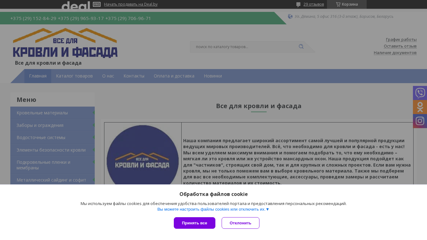 | Название / Заголовок | "Всё для кровли и фасада" - контакты, товары, услуги, цены |