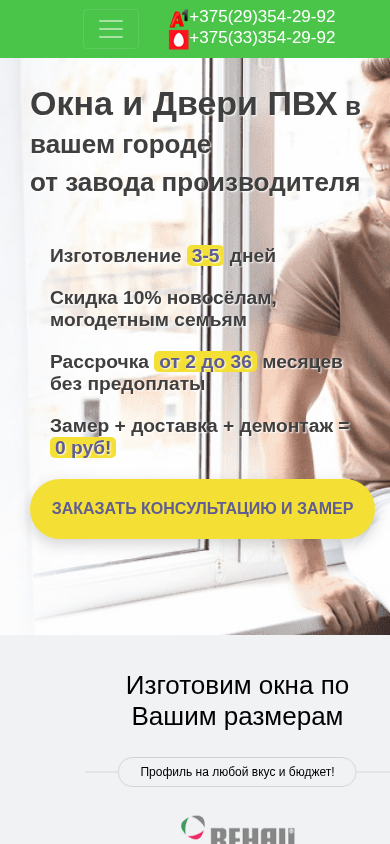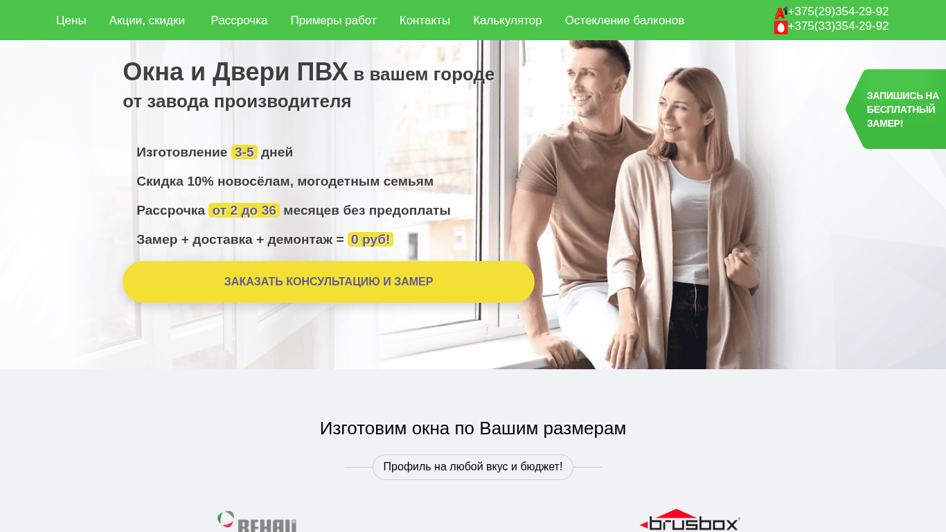 | AI-анализ | --- This website is for VinДom, a company offering affordable plastic windows in Belarus. The site focuses on low prices directly from the manufacturer and all-inclusive services. Users can request a free measurement and consultation by providing their phone number, with a specialist contacting them within 15 minutes. The site also provides a calculator for window prices and details on various offers, discounts, and financing options. Additionally, the site features examples of past work and contact information. Windows and doors made by the producer are available in the user's city, with manufacturing taking 3-5 days. Discounts and financing are offered to new homeowners and young families. The cost includes a window of the chosen profile in white, basic fittings, and a glass pane. Additional costs may include skirting boards, casting, edge treatment, child safety features, colored skirting boards, mosquito nets |