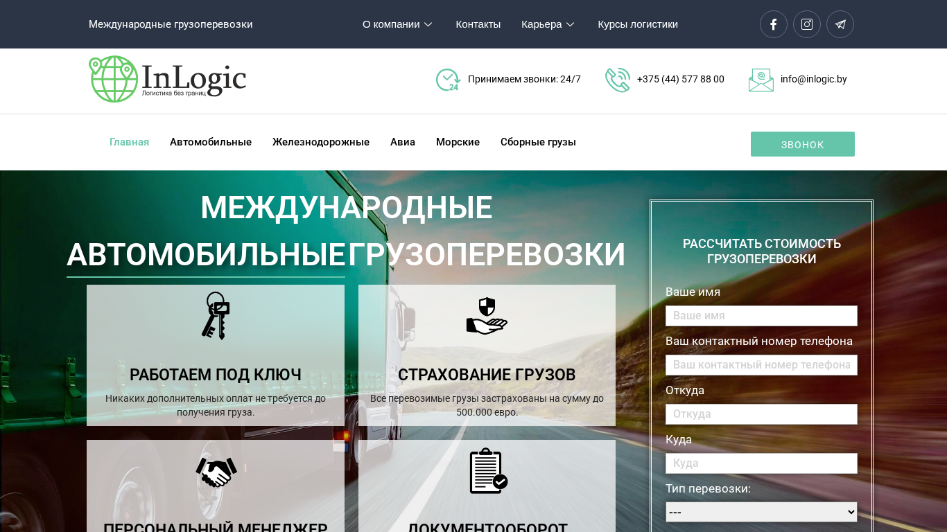 | SEO-описание | Компания «ИнЛоджик» осуществляет международные грузоперевозки любых типов грузов. С нами быстро, надёжно и выгодно. Звоните! +375 44 577 88 00 |