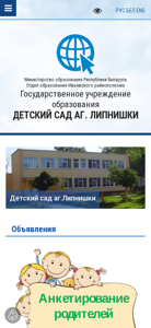 | AI-анализ | The website is for a kindergarten named "Аг. Липнишки" (Lipnishki Agricultural Community) located in the Ivjeroo district of Grodno region, Belarus. The title of the website is "Детский сад аг. Липнишки" (Detsky sad ag. Lipnishki, English: Lipnishki Kindergarten). The description field is empty, but the keywords indicate that the website provides information about the kindergarten, its location, and its schedule. The top words suggest that the website offers news, a constitution, a license, and information about the staff, groups, and fees. The website also appears to have a news section, a contact page, and a section for parents with information about enrollment and available spaces. The website is managed by the Ivjeroo district education department, which is under the Ministry of Education of |