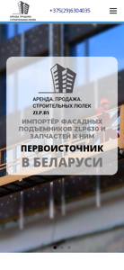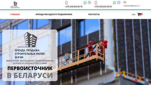 | AI-анализ | The portal arendazlp.by offers rental services for ZLP 630 construction hoists in Minsk, Belarus. The description mentions a rental price of 50 rubles per month for the mounting of the hoist. The website includes a phone number for contacting the service, +375(29)630-40-35, and an email address, metallbk@mail.ru. The portal features a main menu with options for importing and purchasing ZLP630 scaffolding lifts and their parts, as well as a section for renting a facade lifting platform. The website also includes a section on guarantees and after-sales service, and information about the technical specifications and benefits of the ZLP 630 lifting platform. The portal appears to focus on the rental and sale of construction hoists and related equipment |
