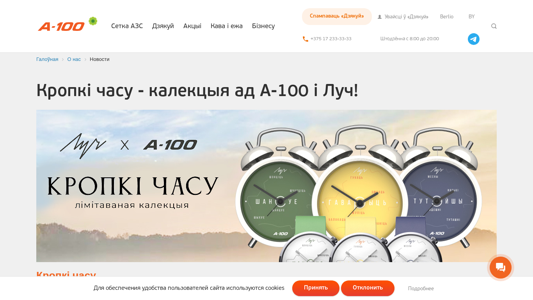 | SEO-описание | Вашай увазе лімітаваная калекцыя гадзіннікаў Кропкі часу ад А-100 і Луч! ✔ Сетка аўтазаправачных станцый А-100 |