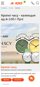 | AI-анализ | The portal is an open line A100 Gas station network with a map, fuel prices, news, and services for business clients. It offers a special program for clients, including control of fuel quality on the road, a mini-cafe, and a registration of actions. The website is a limited collection of watches and clocks from A-100 and Lux, featuring a unique selection of Belarusian dialects in minimalist design. The watches and clocks are presented in three color schemes: black lake, the first rain, and a meadow. The original design includes a dial with a star symbol in the letter 'i'. The website also provides contacts, office specialists' hours, and news about A-100. Keywords include A-100 contacts, contact center, specialty office, memo pad, retail sales assistant, business services, control of fuel quality, partner program, tenders, graphic |
