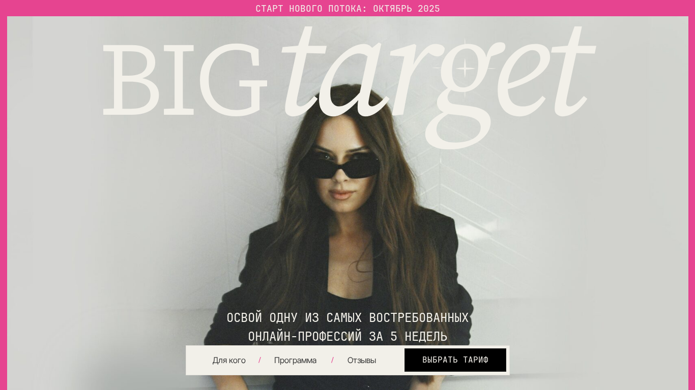 | AI-анализ | The website "BIG Target" is an educational platform offering a five-week course on targeted advertising. The description emphasizes the opportunity to learn a sought-after online profession and earn money remotely. The course is designed for beginners in targeting as well as experienced targetologists, SMM specialists, experts, bloggers, beauticians, and commerce professionals. The author and speaker of the course, Nikita Popylina, boasts a background in digital marketing with over three years of experience and success in various niches across Europe and the US. Students can expect to learn the basics of targeting and marketing, as well as advanced techniques, and will have the opportunity to create their first case and attract clients. The course includes a primary program and additional modules, focusing on preparation for a big start, understanding the target, and achieving results. The website also addresses the Facebook ecosystem, functioning of the ad cabinet, and strategies for |
