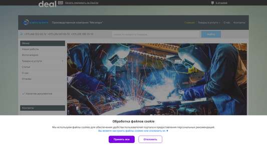 | AI-анализ | --- This online resource, titled "ЧПУП"Мегатаун"" - контакты, товары, услуги, цены, is a production company website offering various products and services related to construction and home improvement. The main categories include fencing, gates, and railings made of corrosion-resistant steel; garden, yard, and street furniture; and metal podiums and stairs. The company also provides metal table services and installation of metal stairs. The contact information is available, including phone numbers for three different contact methods. The website includes a photo gallery showcasing their work and a section for customer reviews. The company is located in Minsk, Belarus, and was registered in 2012. The business hours are from 8:30 AM to 6:00 PM, Monday through Friday. The company specializes in manufacturing and installing |