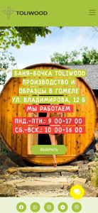 | Адрес | изготовим баню-бочку любой формы и размера!, Выбрать, Баня-бочка toliwood, Производство и образцы в Гомеле, ул. Владимирова, 12 |