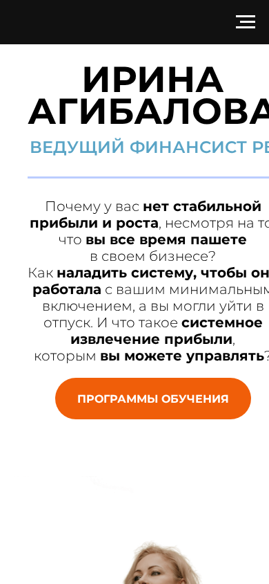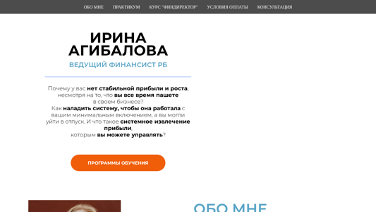 | AI-анализ | This online resource is the official website of Irina Agibalova, a leading financier in Belarus with over 25 years of experience in the field. The website offers information about Irina's background, her business practices, and her three educational programs focused on helping business owners, top executives, freelancers, experts, entrepreneurs, and financiers of all levels to increase their profits and manage their businesses more effectively. The website also includes information about Irina's expertise in business monetization, her successful businesses in real estate development, production, and consulting, and her certification as a business training master and monetization expert. The main programs offered are the "Constructor of Profit" Practicum, the "Constructor of Profit" Business Scaling Practicum, and the "Financial Director on a Million" Course, which focuses on the foundation of business digitization. The website provides |