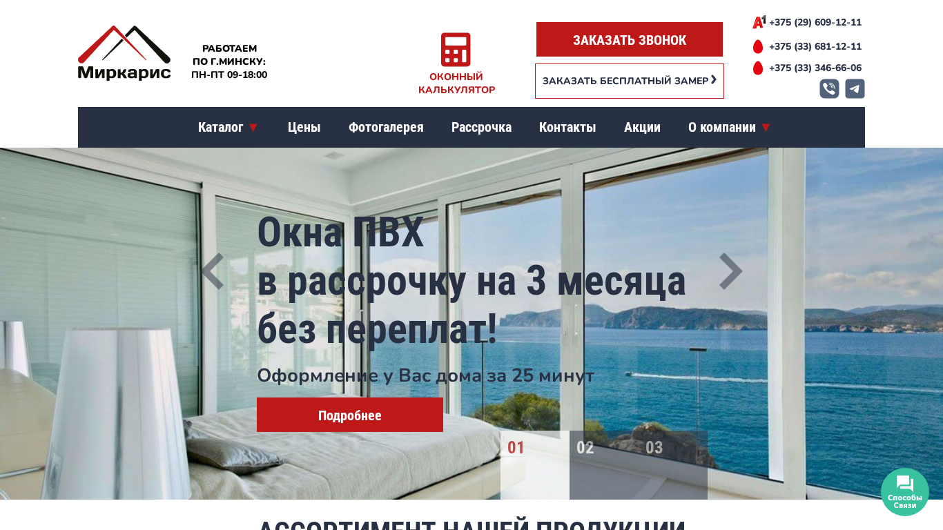 | SEO-описание | Окна в Минске от компании Миркарис — ✅крупнейший производитель окон ПВХ, деревянных окон, роллет и ворот в Минске! |