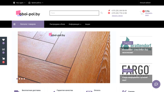 | SEO-описание | Интернет-магазин ❴oboi-pol.by❵ ➥ Напольные покрытия и обои мировых брендов. ✈ Доставка по всей Беларуси. ✓ Рассрочка. ✓ Низкие цены. |