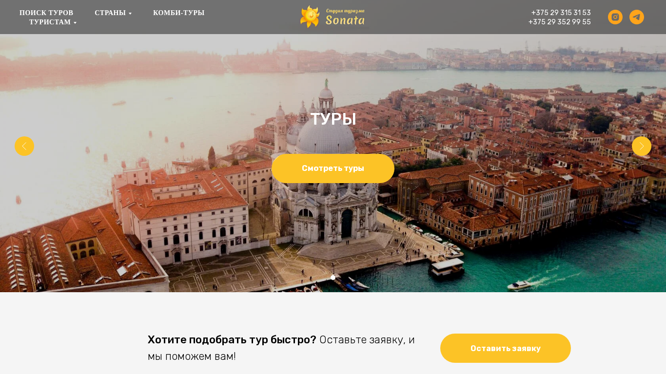 | Название / Заголовок | Студия туризма Соната – туристическое агентство в Минске. Подбор и бронирование туров. |