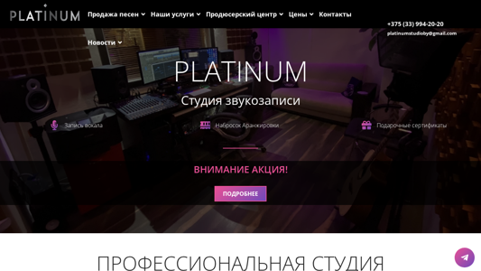 | Название / Заголовок | Студия звукозаписи в Минске Platinum - Записать песню в студии |