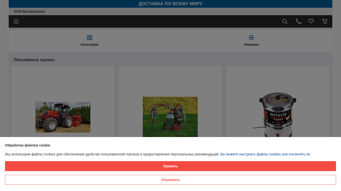 | AI-анализ | This online resource is dedicated to OOO Belexalto, a Belarusian company providing contacts, products, and services along with their respective prices. The website offers delivery services worldwide. Major product categories include tractors, dairy equipment such as milking machines and milk coolers, livestock breeding, and agricultural machinery. Some specific items listed are a 300-liter milk cooler, an Avtos A28P1B automobile trailer, an electric milk separator, and a repair service for Lombardini LDW1603/2204 engines. The site also features a contact section, delivery and payment information, and a full site version. Cookies are used for user convenience and personalized recommendations. The business has been operating on Deal.by for four years, with a PRO sign indicating the use of premium services. |