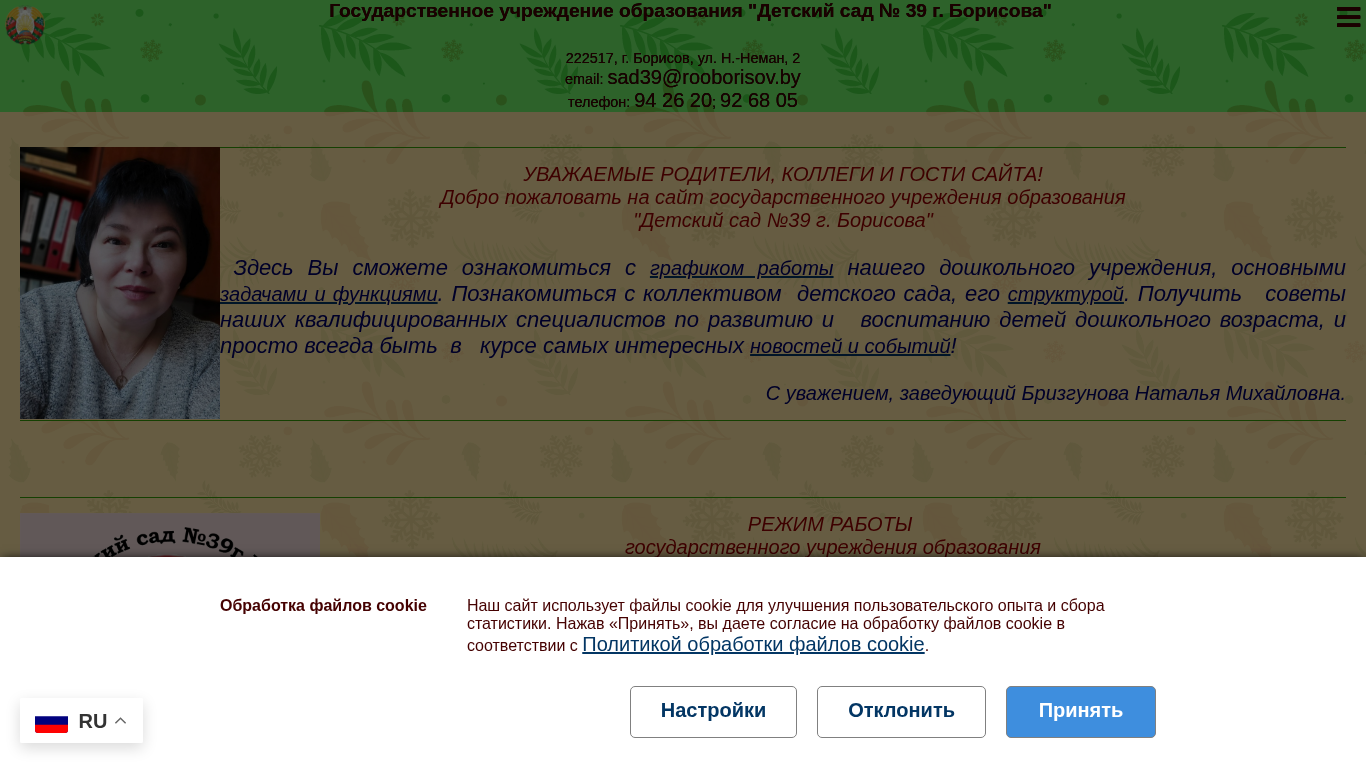 | Название / Заголовок | ГУО "Детский сад № 39 г. Борисова" - Официальный сайт |
