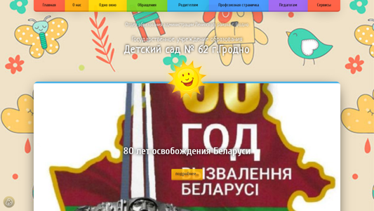 | AI-анализ | --- The website <ds62.lengrodno.gov.by> is dedicated to the Children's School Number 62 located in Grodno, Belarus. The title of the website is "Детский сад № 62 г.Гродно" and it provides information about the institution, its structure, schedule, leadership, social-psychological services, history, education programs, and contact details. Keywords associated with the website include 'Grodno', 'institutions', '2025', 'education', 'work', 'news', 'relationships', 'citizens', 'Belarus', 'child', 'garden', 'contacts', 'district', 'order', 'Lenin district', 'prevention', 'November', 'reception', 'group', 'admission', 'vacancies', 'one window', |