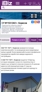| AI-анализ | --- The website is for the construction company OAO SU-153 based in Borisov, Belarus. It offers building services for objects of first to fourth classes of complexity and acts as a general contractor. The company also rents out specialized construction equipment and automotive transport. The address and contact details of the company are provided, along with information about ongoing projects such as the construction of a middle school in Borisov's microdistrict 6 and the rehabilitation of a hospital building with 300 beds. The site includes sections for news, announcements, vacancies, and customer reviews, as well as a catalog of products and services related to construction. Keywords include 'services', 'Borisov', 'construction', and 'rental'. |