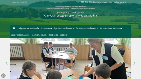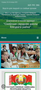 | AI-анализ | This website is the official homepage of Sinyavka Secondary School in Kletsk District, Belarus. The title of the page is "Сіняўская сярэдняя школа Клецкага раёна," and the description includes information about the location, address, and the Ministry of Education in Belarus. The top keywords are "school," "education," and "Belarus." The school's mission, statute, and educational programs are outlined, including special education, school meals, and infastructure development. The website also features information about student achievements, interactive resources, and contact information. The domain is registered as "sinyavka.kletsk-asveta.gov.by." |