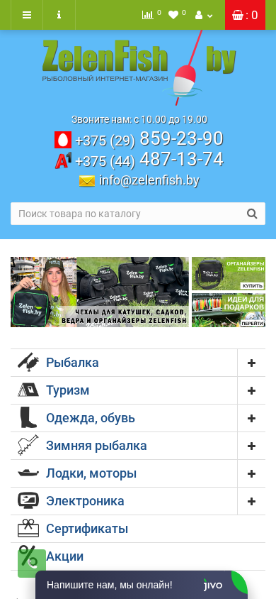 | SEO-описание | Рыболовный интернет магазин в Минске ZelenFish.by с удовольствием предлагает посетителям рыболовные снасти, которые можно купить в Республике Беларусь. |