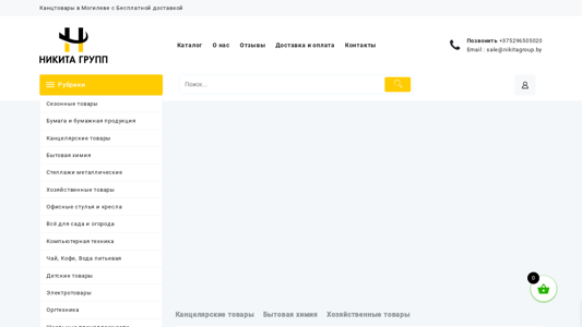 | SEO-описание | Никита Групп доставка канцелярских товаров по Могилеву, Могилёвской, Витебской, Минской и Гомельской области. Бытовая химия, офисная бумага, хозтовары, товары для школы |