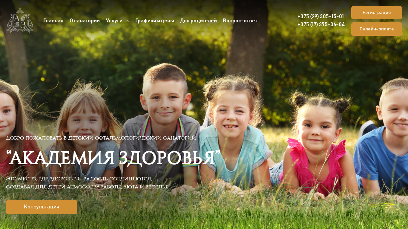 | AI-анализ | This online resource is dedicated to a children's ophthalmological sanatorium named "Академия здоровья" (Academy of Health). The website provides information about the sanatorium, its services, types of stays, diagnostics, and fees. Users can register online, make online payments, and receive consultations. The sanatorium offers various programs for the treatment and prevention of eye diseases, as well as for the health of the respiratory and musculoskeletal systems. It caters to children between the ages of 6 and 16. The website includes a question-answer section and offers multiple stays with different durations throughout the year. |