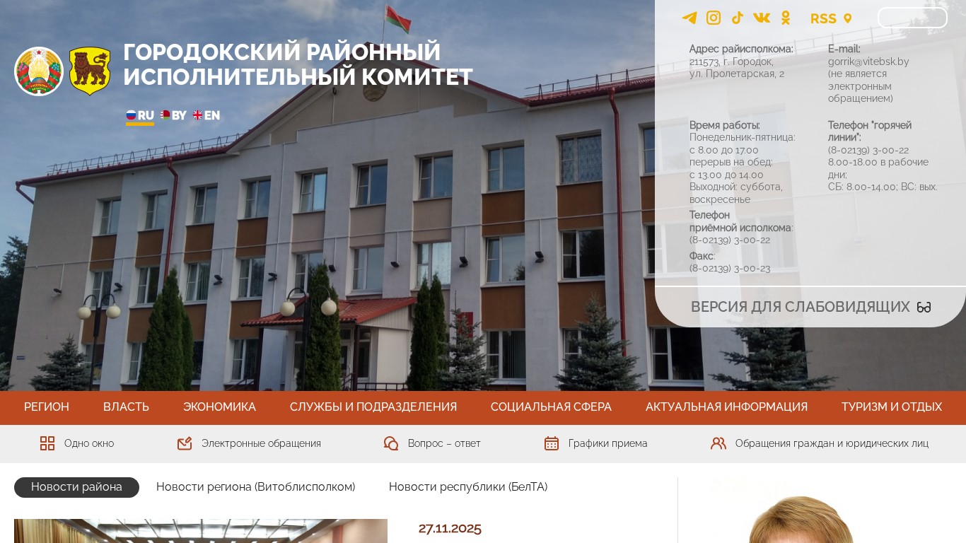 | Адрес | райисполкома:, 211573, г. Городок, ул. Пролетарская, 2 |