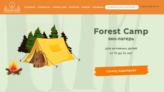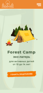 | AI-анализ | --- The website forestcamp.by is dedicated to the children's camp Forest Camp located on the territory of the restorative camp "Wave." The camping site under an open sky is part of the larger camp and the location is strategic. While campers can immerse themselves in the genuine camping experience and explore all aspects of tourist hikes, they can also utilize the infrastructure of camp "Wave" and engage in all camp-wide events. During the project, children will learn to set up and take down tents, build shelters, build fires, and acquire skills in sports orienteering and teamwork. The camp territory is guarded 24/7 and medical assistance is available 24/7, along with free access to drinking water, laundry services, and participation in camp "Wave's" program. Accommodation is provided in four-person wooden cabins, with six- |