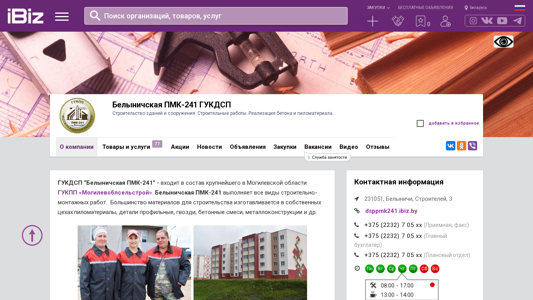 | AI-анализ | The website is for "Белыничская ПМК-241 ГУКДСП," a construction company in Belarus, located in Belynichi, Stryiteley Street 3. The company specializes in the construction of buildings and structures, offering various building and construction services, including the production and sale of concrete and pine materials. The website provides a scheme for reaching the company, contact information, and an overview of its offerings, which include constructing buildings and structures, construction and installation services, and the sale of concrete and pine materials. The company's main areas of business are the construction of industrial, cultural, and agricultural buildings. The company owns a fleet of vehicles for efficient and quality project execution, and has received numerous awards and recognitions throughout its history. |