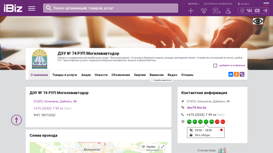 | Название / Заголовок | ДЭУ № 74 РУП Могилевавтодор - Ремонт и содержание автомобильных дорог. Ямочный ремонт. Установка бортового камня, укладка тротуарной плитки. Устройство оснований из песка, щебня, ПГС. Транспортные услуги: перевозка инертных материалов. Выпуск асфальтобетона.. 213051, Белыничи, , Дайнеко, 4А |