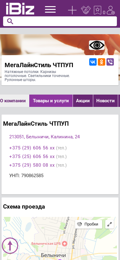 | Название / Заголовок | МегаЛайнСтиль ЧТПУП - Натяжные потолки. Карнизы потолочные. Светильники точечные. Рулонные шторы. . 213051, Белыничи, , Калинина, 24 |