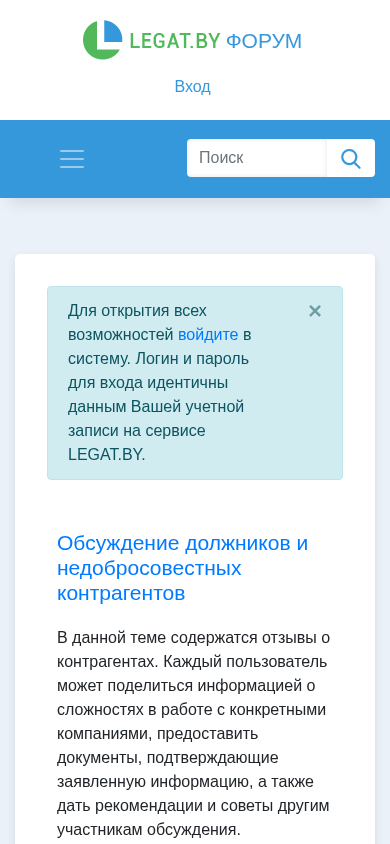 | Ключевые слова | Общение пользователей Legat.by Обсуждение конкретных контрагентов. |