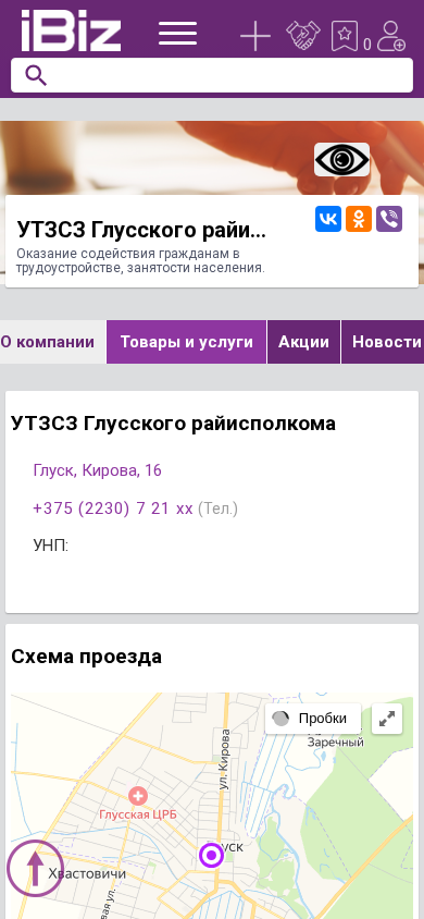 | Название / Заголовок | УТЗСЗ Глусского райисполкома - Оказание содействия гражданам в трудоустройстве, занятости населения.. 0, Глуск, , Кирова, 16 |