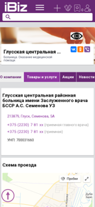| AI-анализ | The web project "Glusk Central District Hospital named after the Honored Doctor of the BSSR A.S. Semenov UZ - Hospital. Medical Assistance." is a healthcare institution located in the city of Glusk, Belarus, at the address Semenova, 5A. The hospital offers various medical services, but no specific information is provided in the given data about the nature of these services. The contact numbers for the reception of the hospital's main doctor and general reception are available, along with the Unified State Register of Enterprises number (UNP) 700031660. The hospital operates from Monday to Friday, from 7:30 AM to 8:00 PM without lunch breaks. Weekends are days off. The hospital is listed under the categories "Hospitals, clinics" in the Ibiz.by business directory. |