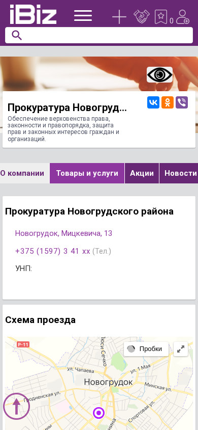 | Название / Заголовок | Прокуратура Новогрудского района - Обеспечение верховенства права, законности и правопорядка, защита прав и законных интересов граждан и организаций.. 0, Новогрудок, , Мицкевича, 13 |