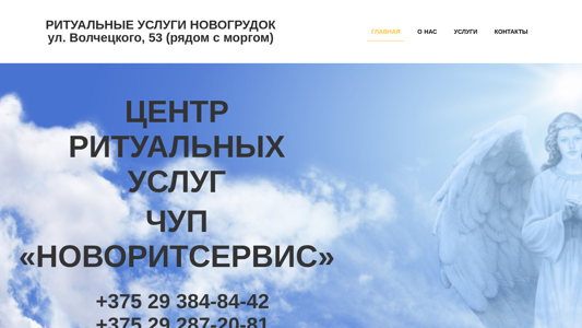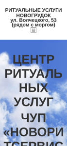 | AI-анализ | The web project "Centr Ritualnych Usług" is a funeral services provider based in Novogrudk, Belarus. The website offers various ritual services, including the organization of funerals on any budget. It provides all necessary services from delivering ritual items to document preparation. The company also offers temporary storage of deceased persons in the morgue for judicial-medical examination. The website includes a store selling ritual items such as coffins, crosses, wreaths, and other accessories. The contact information includes two phone numbers and an email address. The website is located at the address of "ул. Волчецкого, 53 (на территории райбольницы)" in Novogrudk. The website is operated by the director Skoblya V.B. and was last updated in 2022. |