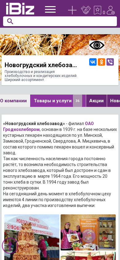 | AI-анализ | The website is for the Novogrudsky Hleboprom Branch of OAO Grodnohlebbrom, a bakery and confectionery production and sales company located in Novogrudk, Belarus. The broad assortment of baked goods and confectionery items is offered. The website provides a map, contact phone numbers, and the company's address: 231400, Novogrudk, Volchetskogo, 67. The company was founded in 1939 and initially consisted of several bakeries located on Mininskaya, Zamkovaya, Grodnenskaya, Sverdlova, and A. Mitskevich streets. As the city's population grew, a new hlebozavod was built and commissioned in March 1964, with a capacity of |