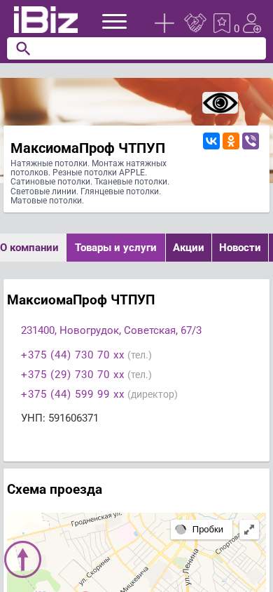 | Название / Заголовок | МаксиомаПроф ЧТПУП - Натяжные потолки. Монтаж натяжных потолков. Резные потолки APPLE. Сатиновые потолки. Тканевые потолки. Световые линии. Глянцевые потолки. Матовые потолки.. 231400, Новогрудок, , Советская, 67/3 |