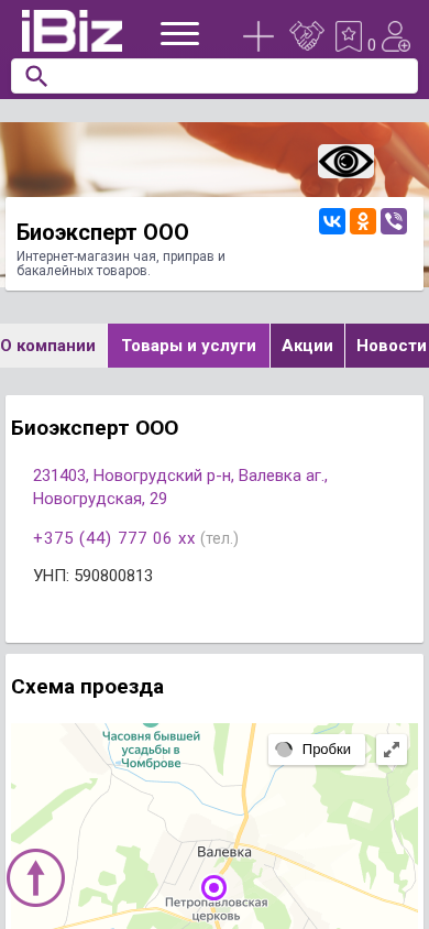 | Название / Заголовок | Биоэксперт ООО - Интернет-магазин чая, приправ и бакалейных товаров. . 231403, , Валевка аг., Новогрудская, 29 |