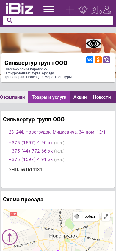 | AI-анализ | --- This website is for Silver Tour OOO, a company offering passenger transport services, excursion tours, transportation rentals, and sea travel as well as shop tours. The website provides a scheme of transportation, contact information, and an address: 231244, Novogrudk, Mitskevicha, 34, pom. 13/1. The company can be reached by phone at +375 (1597) 4 90 xx, +375 (44) 772 66 xx, and +375 (1597) 4 91 xx. Business hours are Monday through Friday from 9:00 to 17:30 with a break from 13:00 to 14:00, and weekends are closed. |