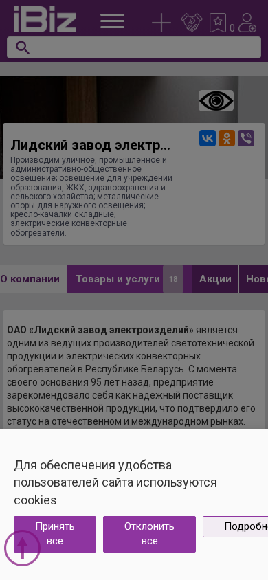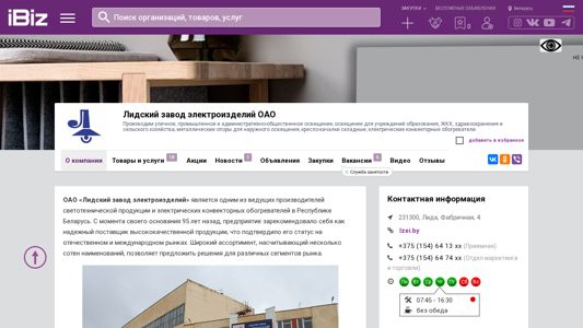 | Название / Заголовок | Лидский завод электроизделий ОАО - Производим уличное, промышленное и административно-общественное освещение; освещение для учреждений образования, ЖКХ, здравоохранения и сельского хозяйства; металлические опоры для наружного освещения; кресло-качалки складные; электрические конвекторные обогреватели.. 231300, Лида, , Фабричная, 4 |