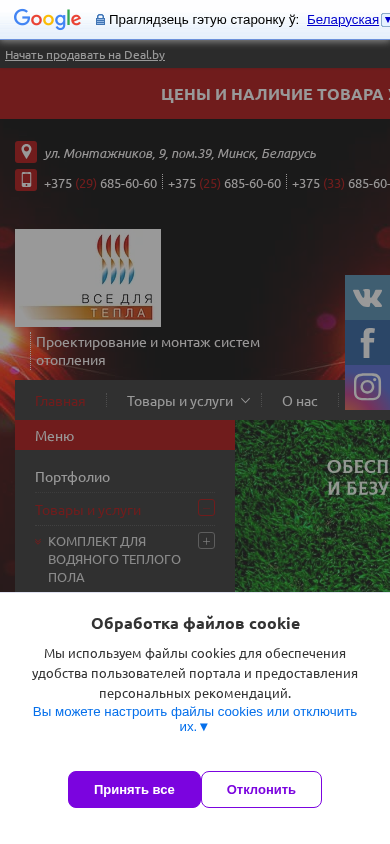 | SEO-описание | Купить системы отопления и комплектующие для теплых полов в Минске от компании Все для тепла. Монтаж отопительных систем и кондиционеров. Высокое качество товаров и услуг. Звоните +375 (29) 685-60-60, +375 (25) 685-60-60. |