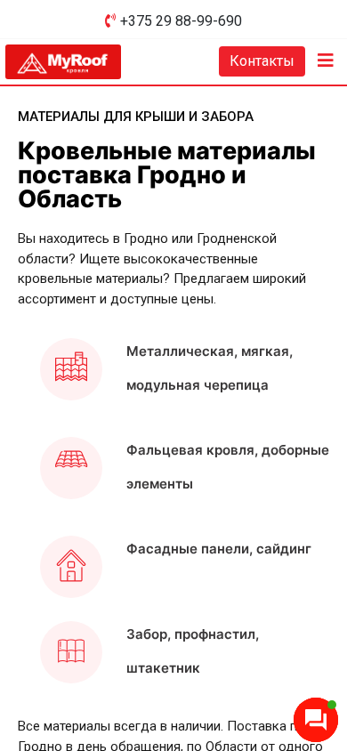 | SEO-описание | Кровельные материалы поставка по Гродно и Области. Доставим, проконсультируем, при необходимости смонтируем кровлю. |
