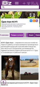 | AI-анализ | This online resource belongs to Ёдки-Агро KSUP, a farming cooperative specializing in the cultivation of grains, legumes, corn, and sugar beets, as well as raising livestock for milk production. The business is located in the village of Ёдки, in the central part of the settlement, with an address of 27 Centralnaia Street. Services and products offered include farming, livestock rearing, and transportation and veterinary services for the local population. The farm covers an area of 8,464 hectares, with 6,363 hectares dedicated to agricultural land, including 3,047 hectares of arable land and 3,310 hectares of meadows. The cooperative operates three dairy farms, a livestock farm, and various workshops, storage facilities, and |