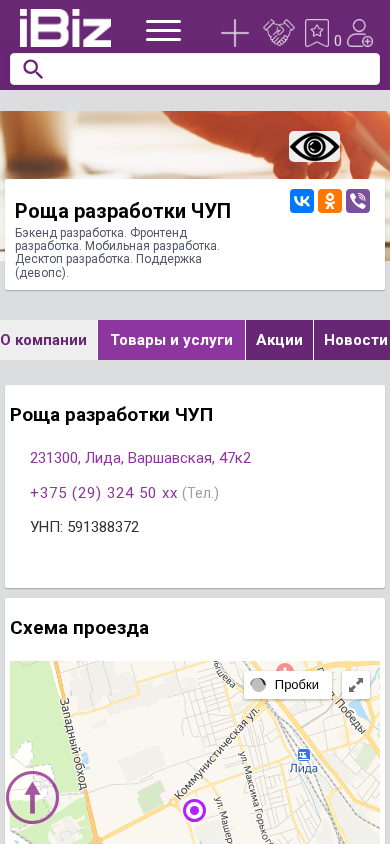 | Название / Заголовок | Роща разработки ЧУП - Бэкенд разработка. Фронтенд разработка. Мобильная разработка. Десктоп разработка. Поддержка (девопс).. 231300, Лида, , Варшавская, 47к2 |