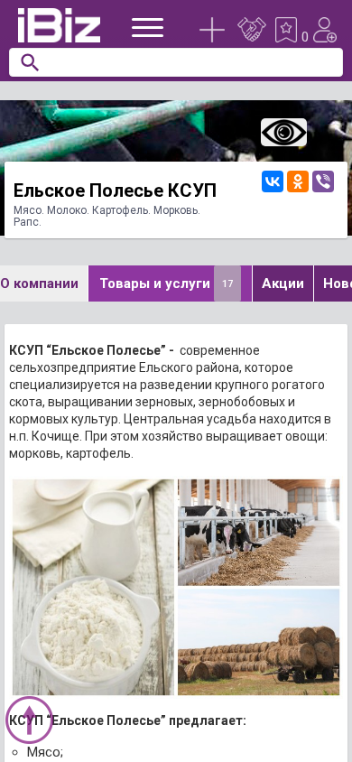 | Название / Заголовок | Ельское Полесье КСУП - Мясо. Молоко. Картофель. Морковь. Рапс.. 247835, , Кочище д., Ленинская, 54 |