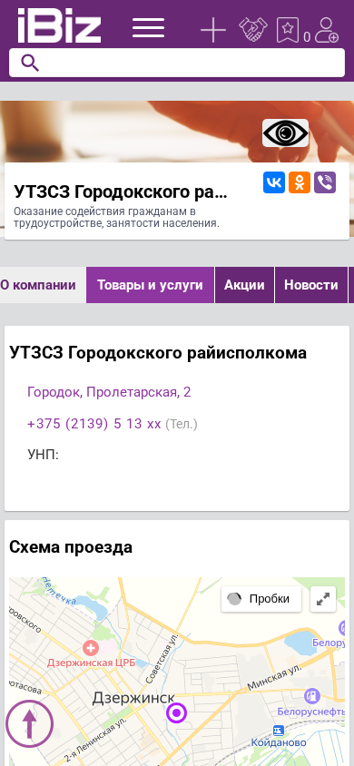 | Название / Заголовок | УТЗСЗ Городокского райисполкома - Оказание содействия гражданам в трудоустройстве, занятости населения.. 0, Городок, , Пролетарская, 2 |