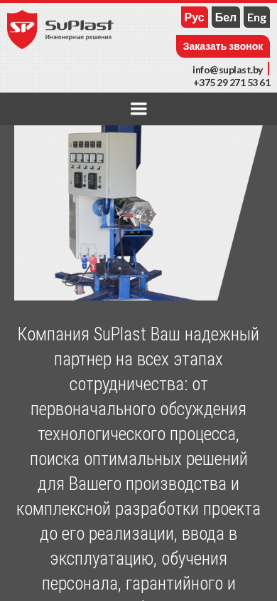 | AI-анализ | --- The website belongs to SuPlast, a Belarusian company specializing in equipment for polymer industry and secondary processing. The main focus is on modernization and automation of production. The company offers NIOKR (Research and Development) services as well. The homepage provides contact information, including a phone number and email address. The company's mission is to be a reliable partner throughout the entire cooperation process, from initial consultation and finding optimal solutions for production to project implementation, personnel training, and post-sales service. The website also features information about two completed projects: an extruder and a molding press. The company's contact details include a main engineer, Vyacheslav Surimto, reachable by phone or email, and the company address and bank account information. The website is available in English, Belarusian, and Russian. |