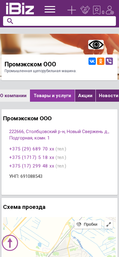 | AI-анализ | The website is for Promekscom OOO, a Belarusian company specializing in industrial wood chippers. The website provides contact information, including three phone numbers and a street address in the Podgorna district of Stolbtsovsky region. It also features a company description and a map for visitors. The site is organized into various categories including 'Company', 'Products and Services', and 'Contacts', with subcategories for 'Equipment, Machines, Mechanisms', 'News', 'Advertisements', 'Vacancies', 'Videos', 'Reviews', and 'Company in Categories'. The company's Unified State Register number is displayed. The site operates from 9am to 6pm Monday to Friday and is closed on weekends. |